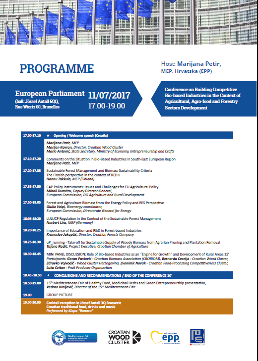 Croatian Chamber of Agriculture participated on seminar with the main aim to introduce the audience with positive impact of biomass and alternative ways of it’s using. Tajana Radić from the Croatian Chamber of Agriculture has presented a project which aims to release the European strong potentials of wood biomass residues that have been produced by removing plantations and promoting its sustainable use as energy raw materials. The project involves 11 partners in 7 countries. Ms. Radić stressed that she hopes that one will find support for such projects, as the goal is to import less when we already have the capacity to produce independently. The overall event was at a high political and institutional level, attesting to the presence of leading European sector lobbyists, representatives of European administrations, academics and representatives of embassies and missions of member states in Brussels.