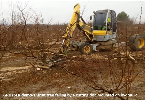 The third demo concerns the plantation removal of 1 ha nectarine trees in Miralsot (Fraga) by GRUYSER-ECOADESO. In that case, a complex demo was carried out, involving two main models and numerous operations: