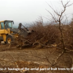 • Fruit tree felling by a hydraulic shear mounted on hydraulic arm and haulage of the tree’s aerial part to field side (performance eq. 6.8 t/h)