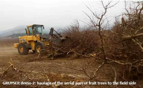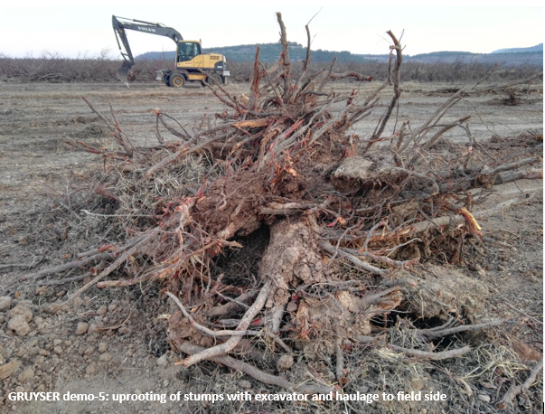 • 3rd demo: Plantation removal of a nectarine field by two different models: whole tree uprooting and shredding, and separate treatment of aerial part and stumps.