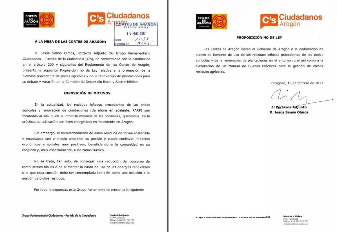 On Monday 5 December, a debate was held and votes were cast to unanimously approve non-legislative motion number 75/2017 which will promote the use of biomass from agrarian pruning and plantation removal. This initiative was presented by councilor Jesús Sanso from the Ciudadanos party on the Rural Development and Sustainability Committee of the Aragonese Parliament.